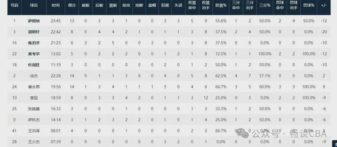 在国内球员方面,胡明轩这场比赛的状态也非常糟糕。他全场出战了23分钟,8投3中得到了8分4个篮板2次助攻。虽然从数据来看,胡明轩的表现还算是能够接受。但在正负值上,胡明轩的正负值却是-20,全队最低。也就是说,在胡明轩出场的时间里,广东男篮是要输给对手20分的。其实这就是胡明轩目前的状态,数据上看起来还能够接受,但对球队的帮助却非常有限,甚至有时候会伤害到球队。