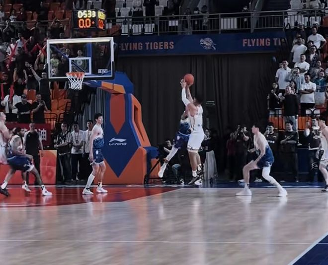 当时的情况是这样,贺希宁持球突破面对冯傲的防守,他从三分线外持球突破冯傲,晃开冯傲之后,贺希宁完成了中距离的跳投,并稳稳打进,在那段时间深圳将比分拉开到4分,这让深圳主导了最后一分钟。