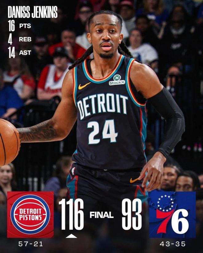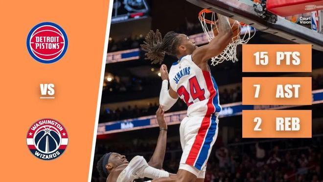 其中第四节,詹金斯单节轰下16分,他在最后时刻投进了一记压哨绝平三分,然后又在加时帮助活塞完成了最多落后13分的逆转。