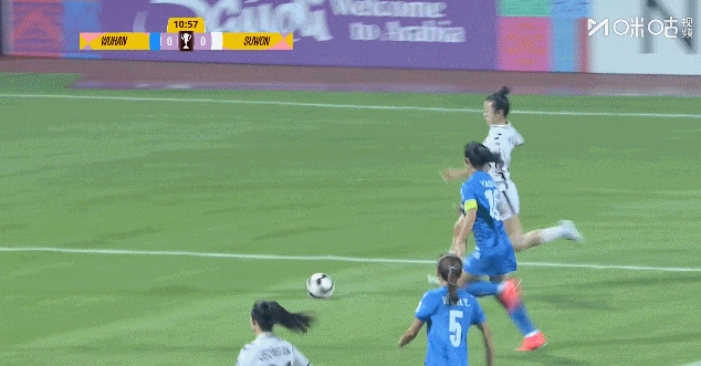 上半场第12分钟,崔宥莉右路横扫门前,池笑然包抄空门轻松得手,武汉车谷江大女足0比1落后水原女足!