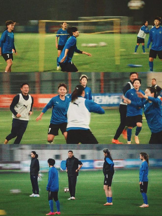 此前,王霜、姚伟、吴海燕、陈晨、彭诗梦五名国脚长期随国家队备战参赛,与俱乐部合练时间较短,球队整体磨合面临一定挑战。3月24日晚,武汉女足在塔子湖1号球场开展全员合练,训练前期氛围轻松活跃,队员们通过趣味互动调整身心状态,新援与国脚迅速融入集体。