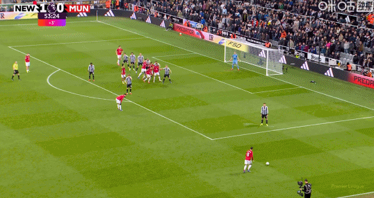 客战纽卡,B费任意球助攻卡塞米罗扳平比分。