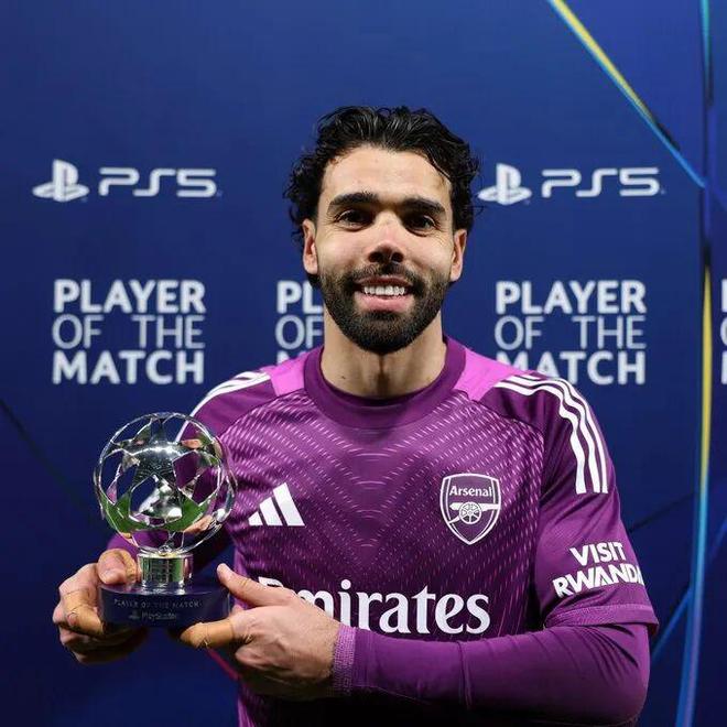然而,阿森纳门前站着的是拉亚,本赛季欧冠扑救率高达90%,8强中所有门将最高的“神人”。本场比赛,他也发挥稳定,并且最终依靠着全场5次扑救,西班牙门将拿到了全场最佳。