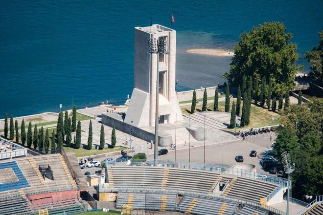 这座高达30米的纪念碑,由深得墨索里尼欣赏的明星建筑师朱塞佩·泰拉尼设计完成。现如今,科莫市中心的旅游指示牌上,还标记着一条“理性主义线路”,游客们可以按照导览,依序参观这座城市众多的理性主义宫阙。科莫的主场西尼加利亚,也是理性主义风格的球场,它应墨索里尼的要求而建造,1927年落成。和战死沙场的圣埃利亚一样,为这座球场冠名的西尼加利亚,也在1916年阵亡于一战前线,他曾经是一名赛艇运动员。