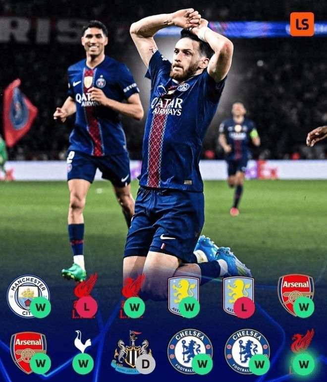上赛季,巴黎横扫所有交手的英超队;本赛季延续不败:赢热刺、斩切尔西、再踩利物浦,只平了纽卡。面对世界第一联赛,他们踢得游刃有余,越打越自信。