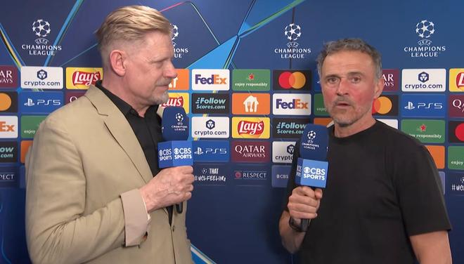 欧冠1/4决赛首回合,巴黎主场2-0战胜利物浦,巴黎主帅恩里克赛后接受了CBS体育的采访。